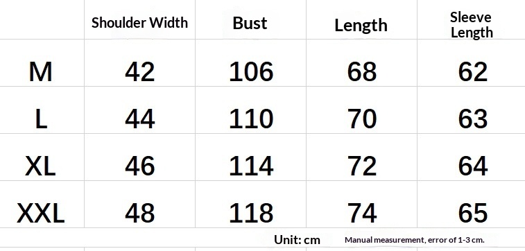 Note: 1. Asian sizes are 1 to 2 sizes smaller than European and American people. Choose the larger size if your size between two sizes. Please allow 2-3cm differences due to manual measurement. 2. Please check the size chart carefully before you buy the item, if you don't know how to choose size, please contact our customer service. 3.As you know, the different computers display colors differently, the color of the actual item may vary slightly from the following images.