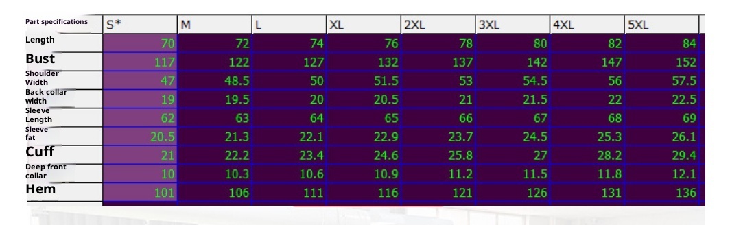 Sizes: S, L, XL, XXL, 3XL, 4XL, 5XL